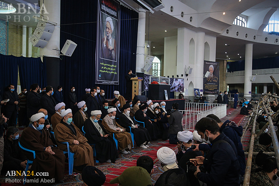 پیکر آیتالله «محمدتقی مصباح یزدی» عضو فقید مجلس خبرگان رهبری و رئیس اسبق شورای عالی مجمع جهانی اهل بیت(ع) امروز دوشنبه 15 دی 1399 در بارگاه ملکوتی کریمه اهلبیت(س) به خاک سپرده شد. مراسم تشییع و خاکسپاری پیکر آیت الله مصباح یزدی صبح امروز از مصلای قدس تا حرم مطهر حضرت معصومه(س) با حضور جمع زیادی از شاگردان، طلاب، عموم مردم و چهره های کشوری و لشکری برگزار شد. آیت الله العظمی «حسین نوری همدانی» از مراجع تقلید بر پیکر عضو فقید شورای عالی مجمع اقامه نماز کرد و بعد از آن پیکر وی در حرم مطهر به خاک سپرده شد. حضرات آیات «اختری»، «نواب»، «محمدی عراقی» و «رمضانی» اعضای شورای عالی و دبیرکل مجمع جهانی اهل بیت(ع) نیز در این مراسم حضور داشتند.