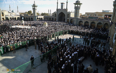 پیکر آیتالله «محمدتقی مصباح یزدی» عضو فقید مجلس خبرگان رهبری و رئیس اسبق شورای عالی مجمع جهانی اهل بیت(ع) امروز دوشنبه 15 دی 1399 در بارگاه ملکوتی کریمه اهلبیت(س) به خاک سپرده شد. مراسم تشییع و خاکسپاری پیکر آیت الله مصباح یزدی صبح امروز از مصلای قدس تا حرم مطهر حضرت معصومه(س) با حضور جمع زیادی از شاگردان، طلاب، عموم مردم و چهره های کشوری و لشکری برگزار شد. آیت الله العظمی «حسین نوری همدانی» از مراجع تقلید بر پیکر عضو فقید شورای عالی مجمع اقامه نماز کرد و بعد از آن پیکر وی در حرم مطهر به خاک سپرده شد. حضرات آیات «اختری»، «نواب»، «محمدی عراقی» و «رمضانی» اعضای شورای عالی و دبیرکل مجمع جهانی اهل بیت(ع) نیز در این مراسم حضور داشتند.