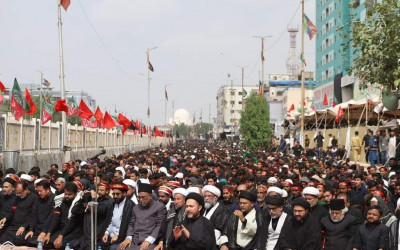 Walking ceremony in Arbaeen of Imam Hussain (a.s.) and Zuhr prayer under the Imamate of Hojat al-Islam Sayed Shahshanshah Hussain Naqvi, a prominent member of the AhlulBayt (a.s.) World Assembly was held in Karachi, Pakistan.
