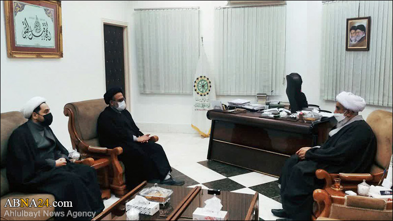 Hojat al-Islam Sayed Mofid Hosseini Kouhsari, head of the Center for Communication and International Affairs of the Seminaries met with Ayatollah Reza Ramazani, Secretary General of the AhlulBayt (a.s.) World Assembly at the Assembly building in Qom.