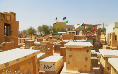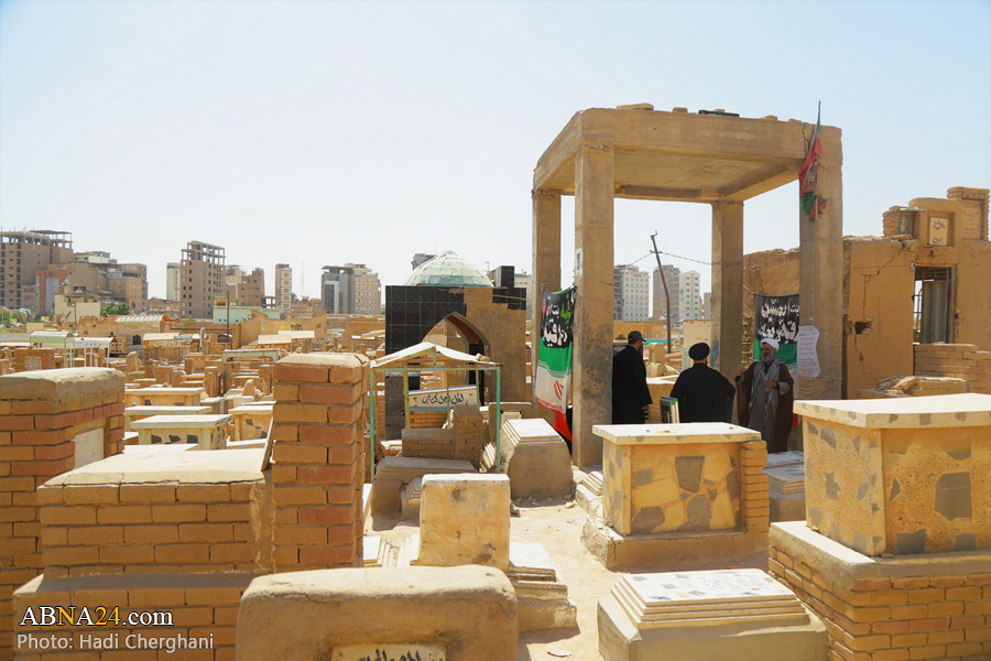 Some of Qom seminary missionaries who are in Najaf on the occasion of Imam Hussain’s (a.s.) Arbaeen, narrate the story of martyr Rais Ali Delvari in his tomb in Wadi Al-Salam Cemetery.