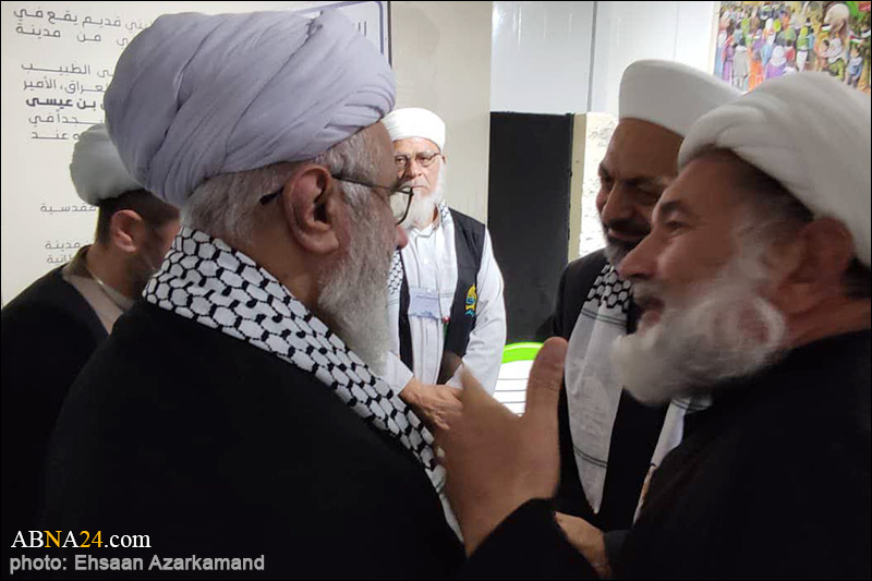On the Arbaeen Great Walk route from Najaf to Karbala, attending the “Neda al-Aqsa” (The Cal of Al-Aqsa) Mowkeb, in front of the pillar No. 833, Ayatollah Reza Ramazani, Secretary-General of the AhlulBayt (a.s.) World Assembly, visited the exhibitions of this Mowkeb and participated in its Quranic gathering. After this meeting, a group of resistance-supporting Sunni scholars from Palestine, Lebanon, and Syria, who were present in the Arbaeen Great Walk 1444 H (2022), met with the Secretary-General.